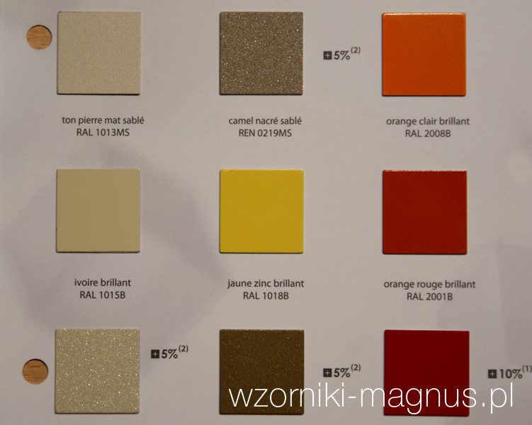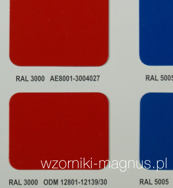 Wielkości standardowych próbek eksponowanych kolorów na blaszce: